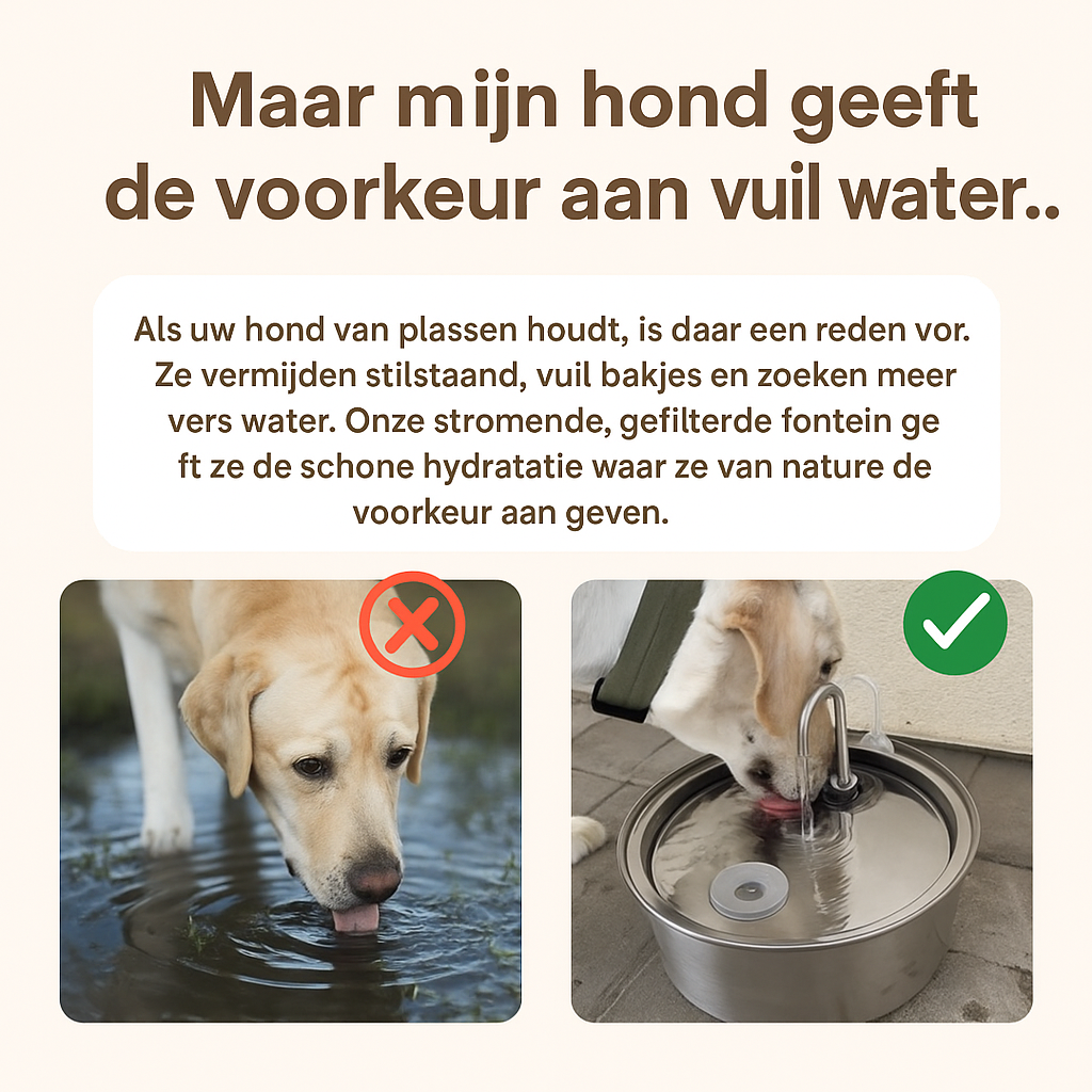 Mijn hond drinkt meer water dan ooit. Hij is dol op het stromende water. Het maakt hydrateren echt leuk!